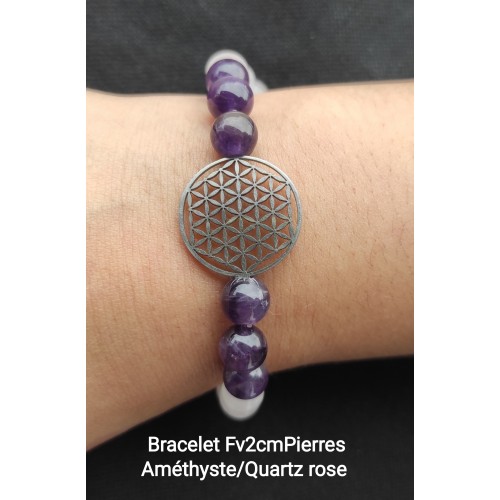 Bracelet Fleur de Vie avec Améthyste et Quartz rose