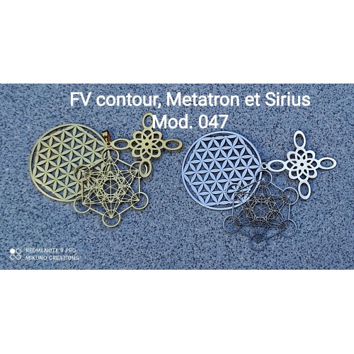 Médaille Fleur de Vie (avec contour), Cube de Métatron, et Sirius